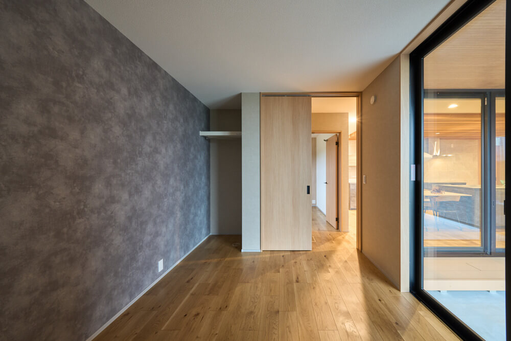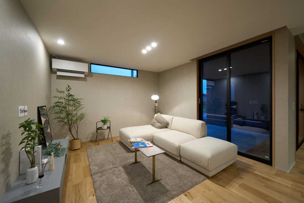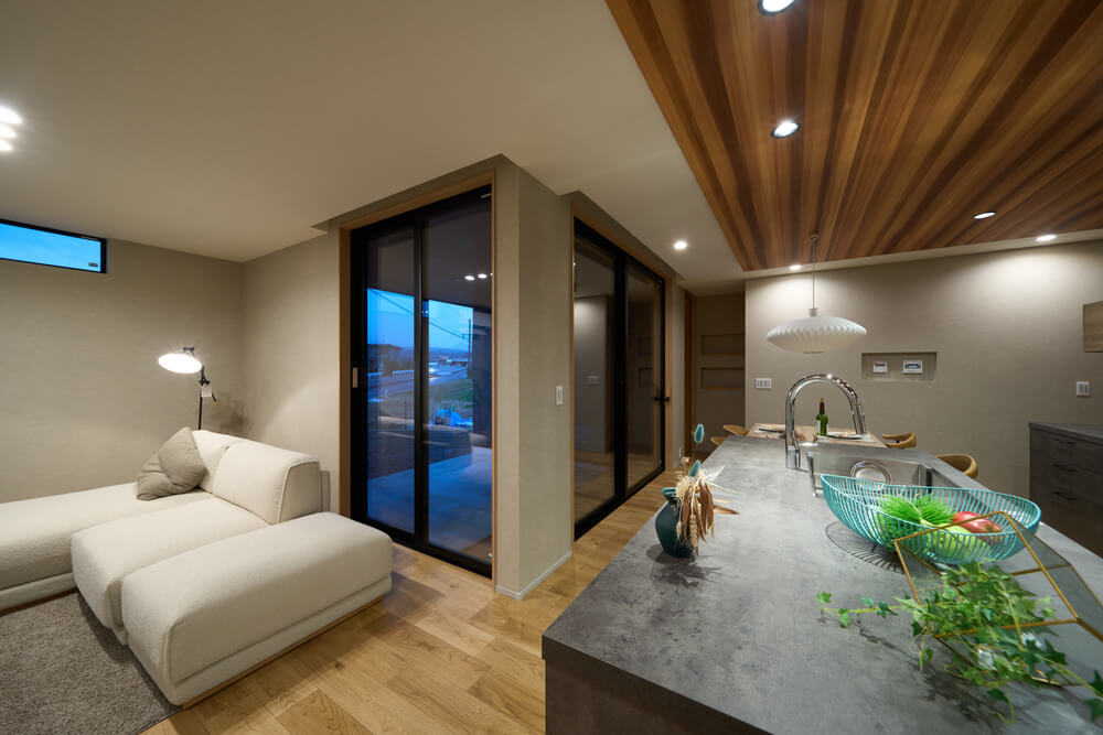 テラスをコの字で囲むようにリビング・ダイニング・寝室を設けたことでどの部屋にいても家族の気配を感じる理想的な平屋です