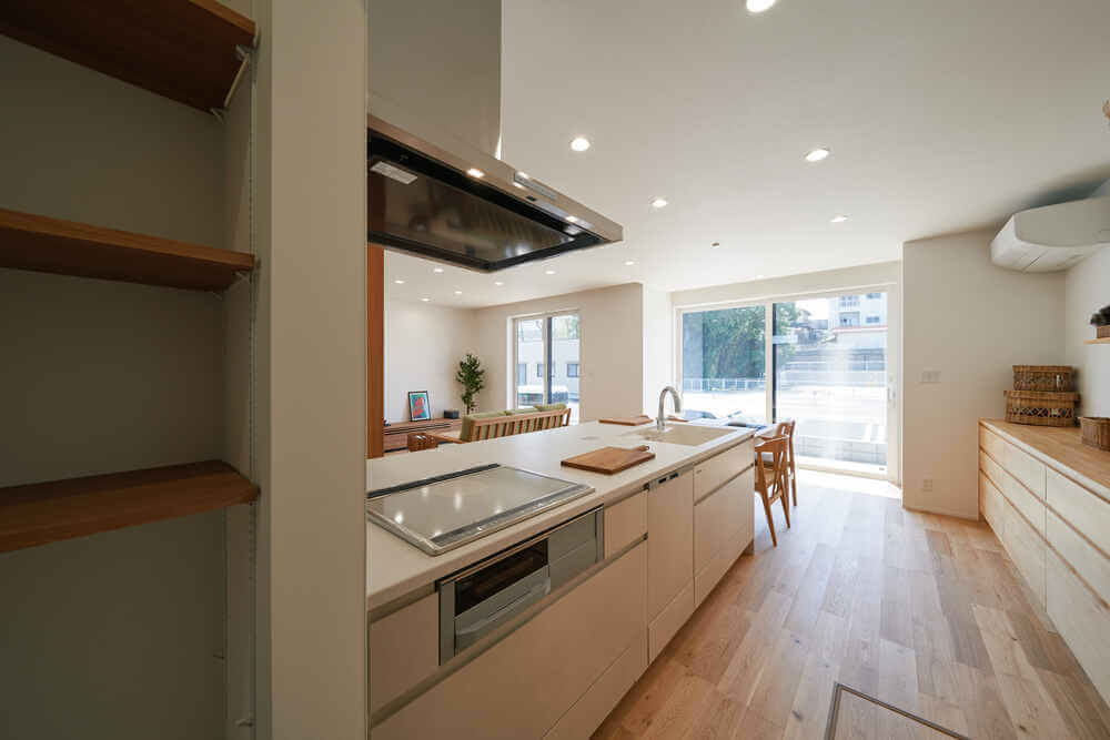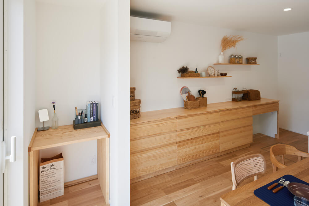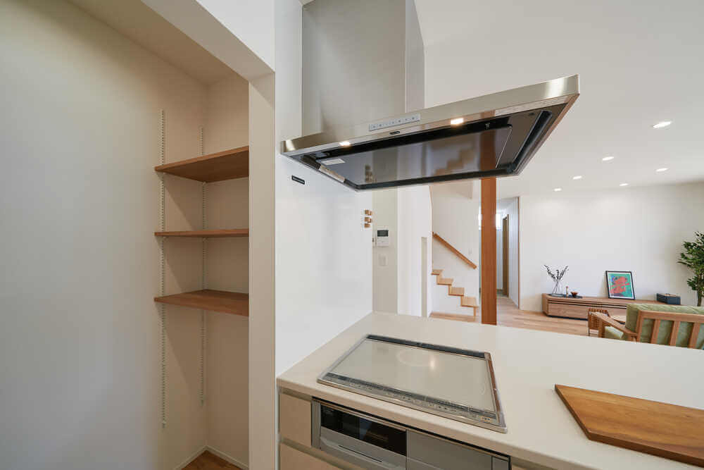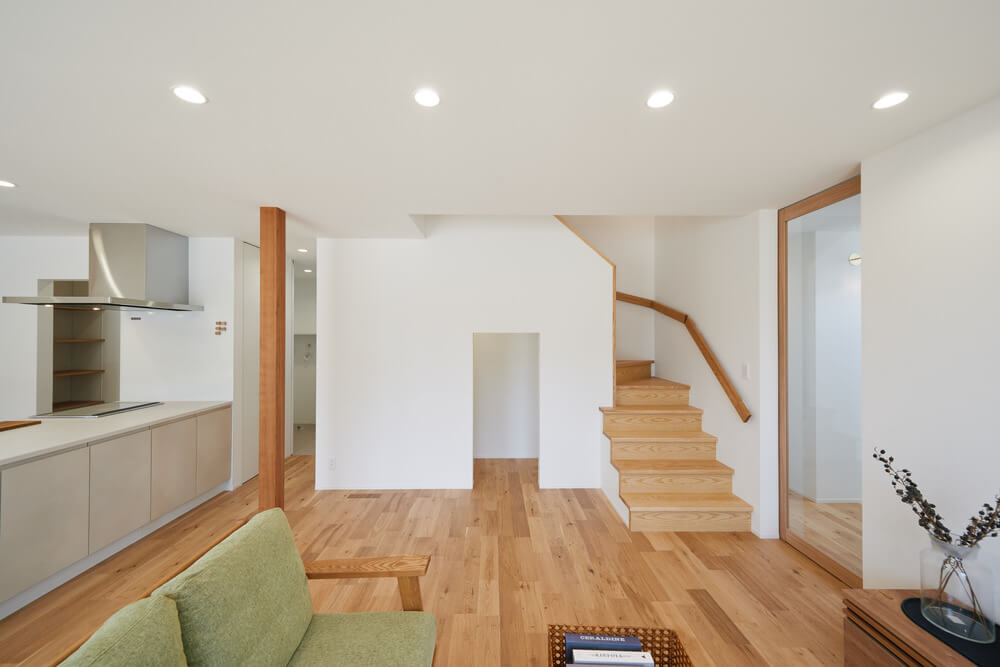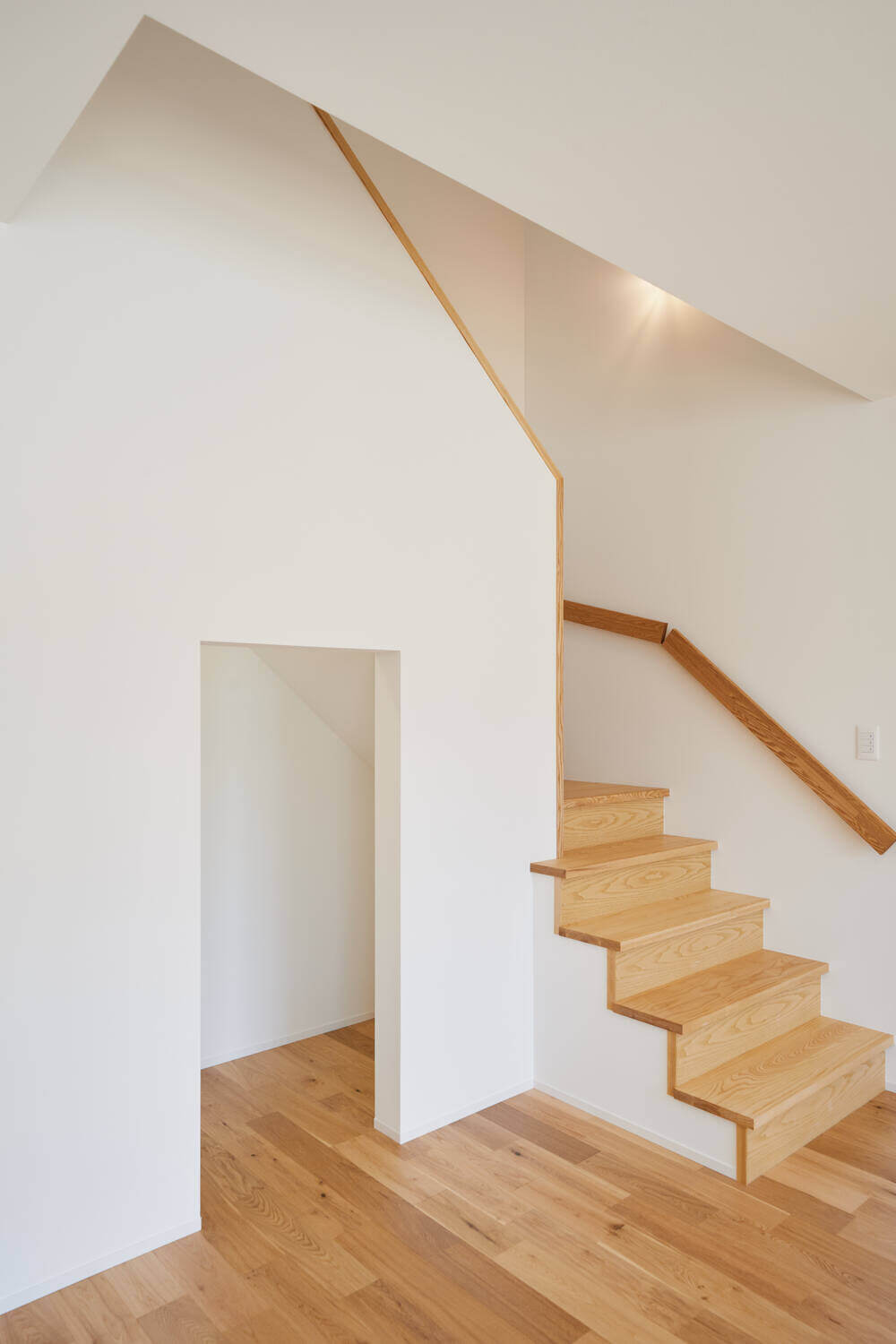 空間を隅々まで有効活用するため階段下には収納スペースを確保し見せない収納が木の美しさを引き立てます。