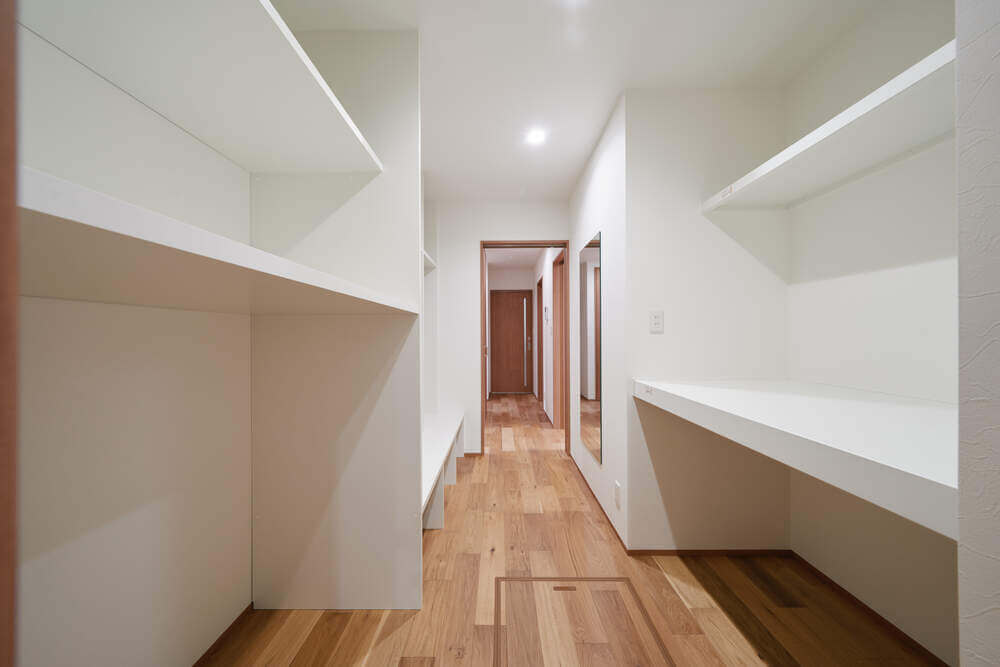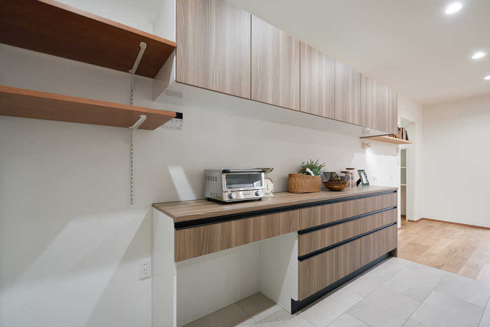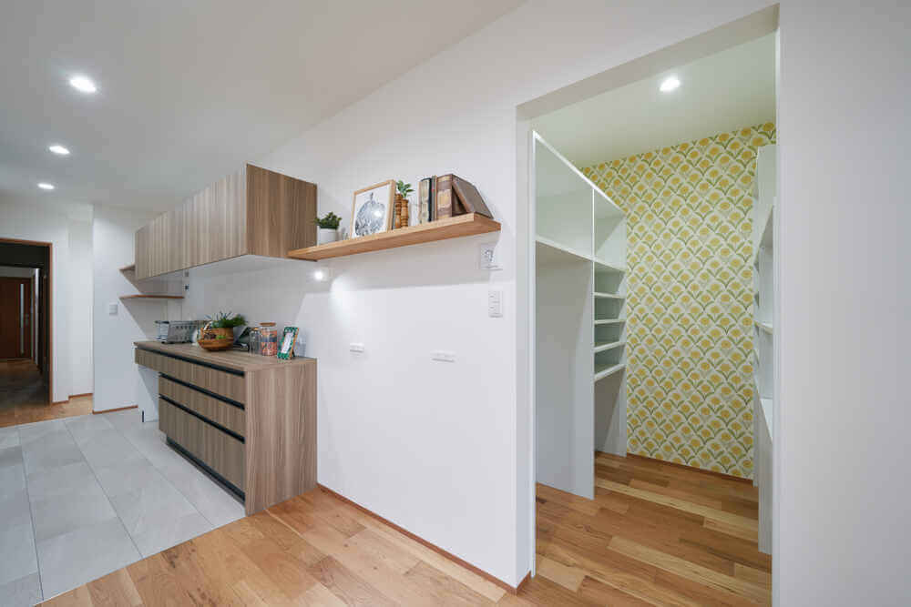 大容量のパントリーや豊富な収納スペースが多世帯でもストレスなく生活できます。